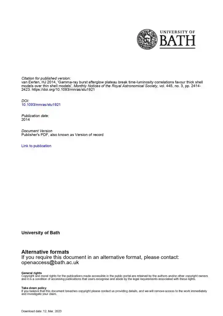 Gamma-ray burst afterglow plateau break time–luminosity correlations favour thick shell models over thin shell models