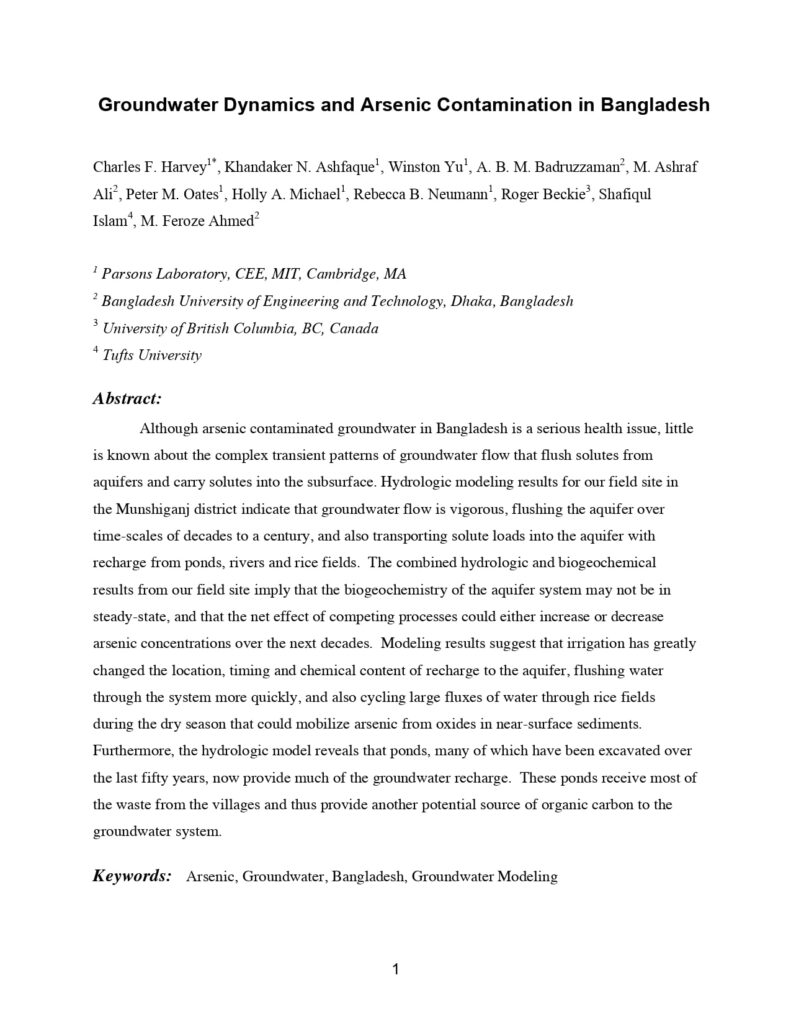 Groundwater Dynamics and Arsenic Contamination in Bangladesh