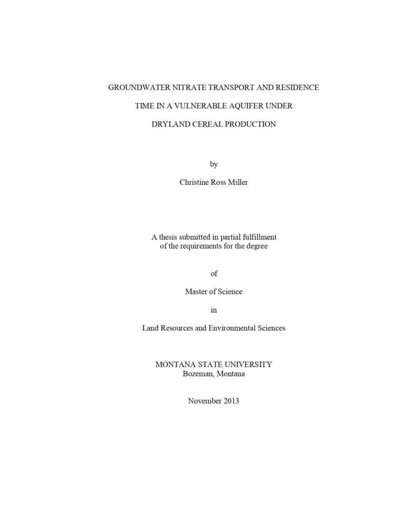 Groundwater Nitrate Transport And Residence Time In A Vulnerable Aquifer Under Dryland Cereal Production