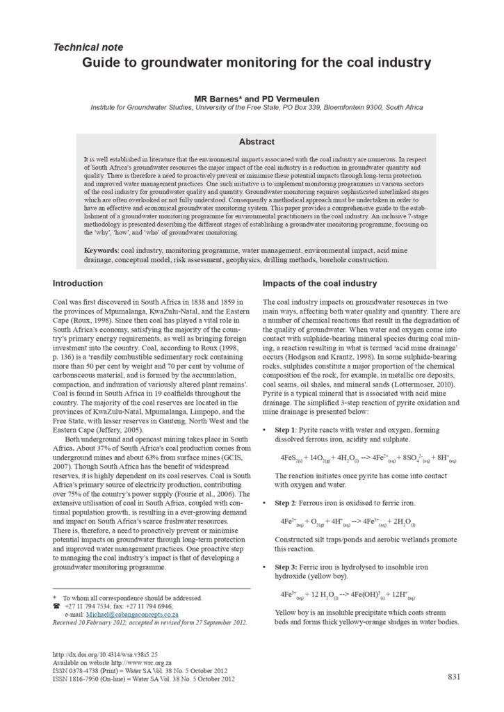Digital Book Guide to Groundwater Monitoring for the Coal Industry Download Book Back to library Share