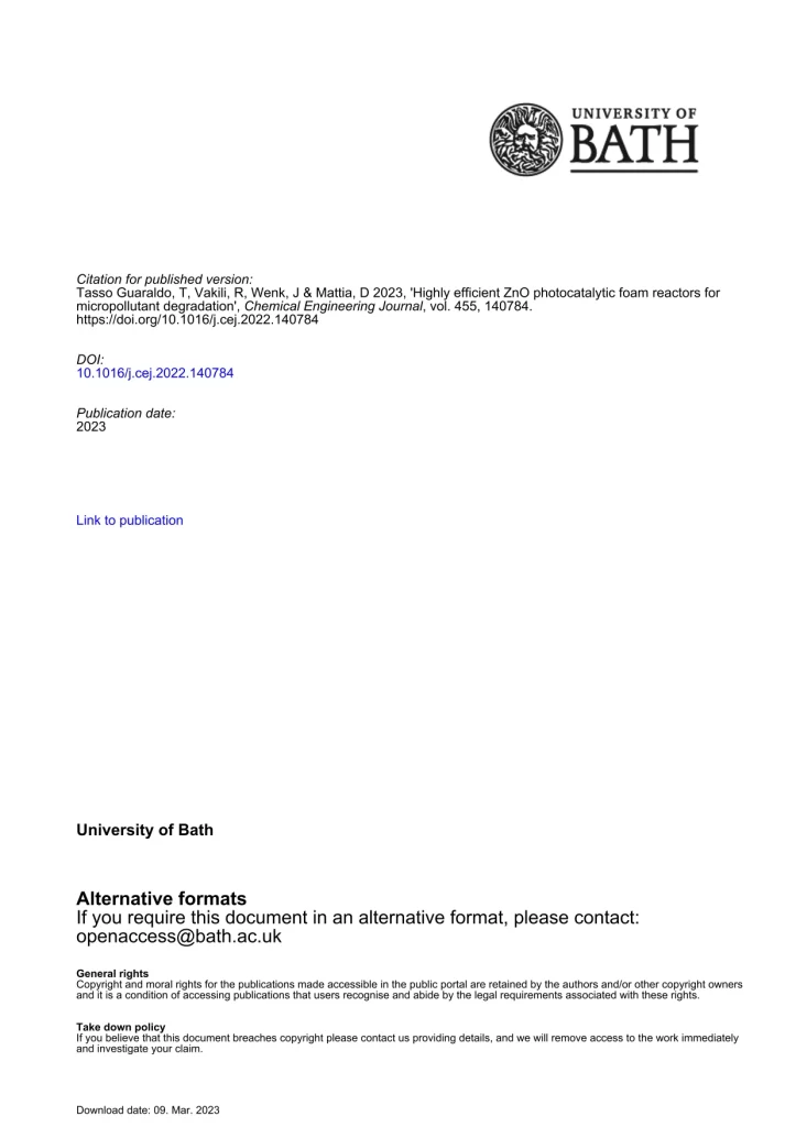 Highly Efficient ZnO Photocatalytic Foam Reactors For Micropollutant Degradation