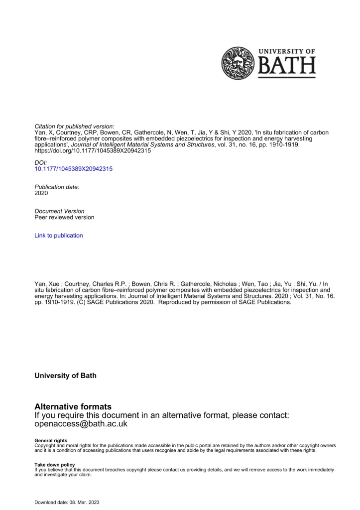 In-Situ Fabrication Of Carbon Fibre Reinforced Polymer Composites With Embedded Piezoelectrics For Inspection And Energy Harvesting Applications