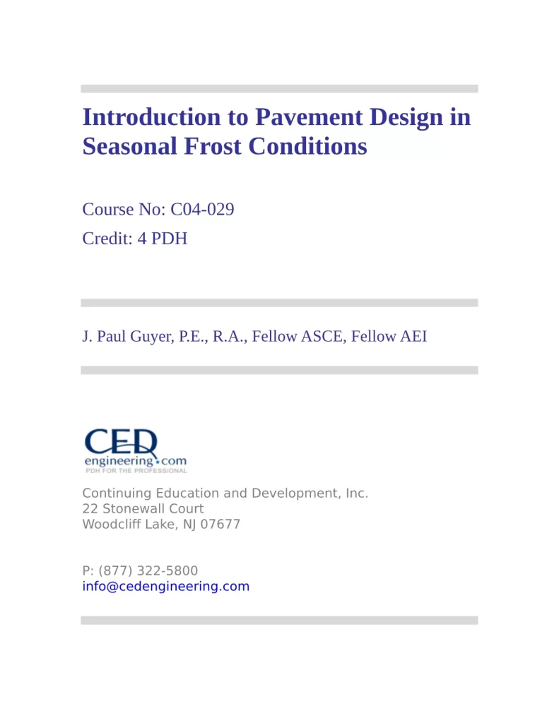 Introduction to Pavement Design in Seasonal Frost Conditions