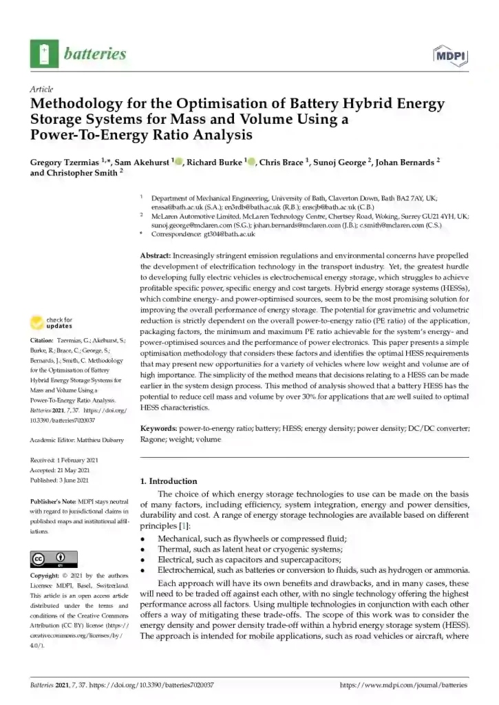 Methodology for the Optimisation of Battery Hybrid Energy Storage Systems for Mass and Volume Using a Power-To-Energy Ratio Analysis
