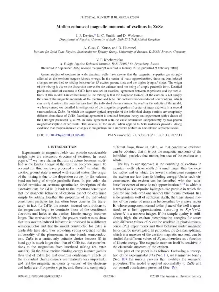 Digital Book Motion-Enhanced Magnetic Moments of Excitons in ZnSe Download Book Back to library Share