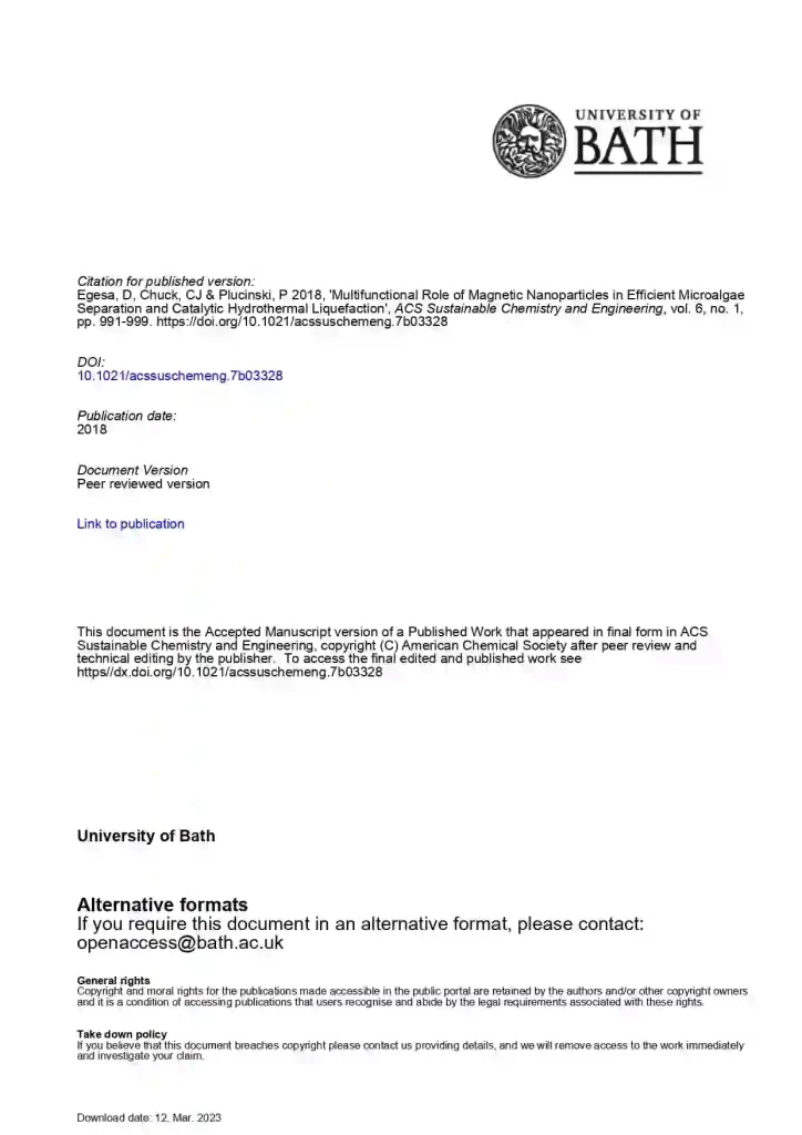 Multifunctional Role of Magnetic Nanoparticles in Efficient Microalgae Separation and Catalytic Hydrothermal Liquefac- tion