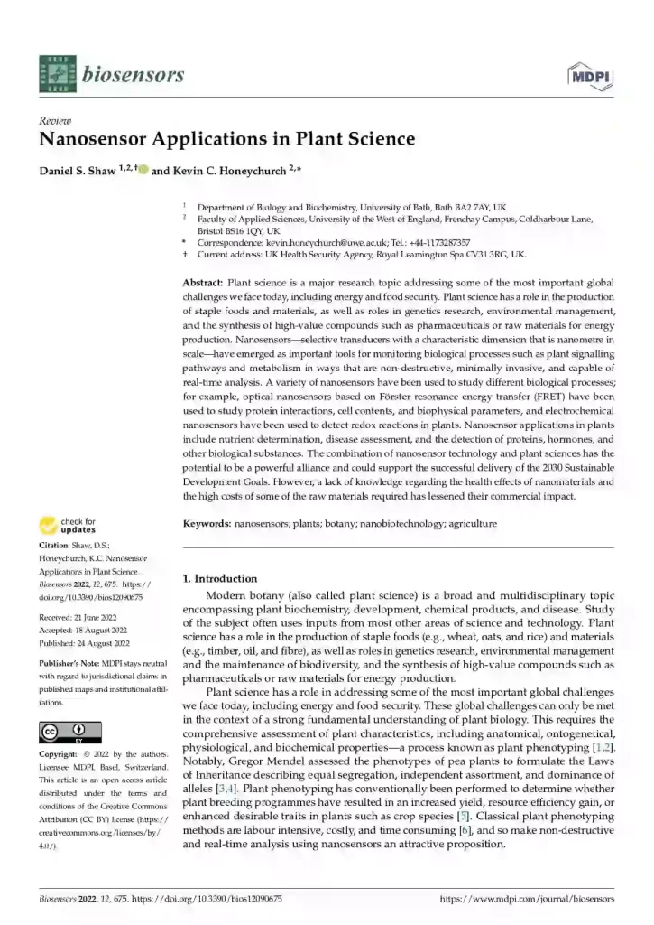 Nanosensor Applications in Plant Science