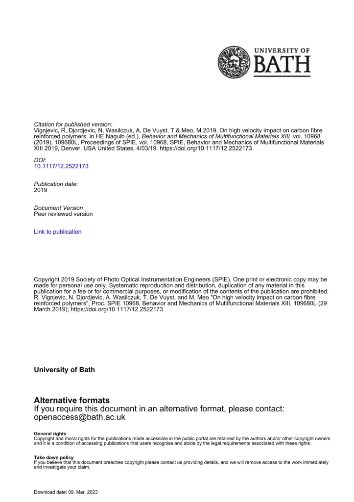 On High Velocity Impact on Carbon Fibre Reinforced Polymers
