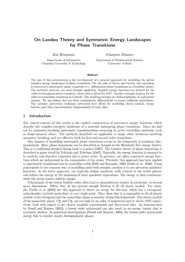 On Landau Theory and Symmetric Energy Landscapes for Phase Transitions