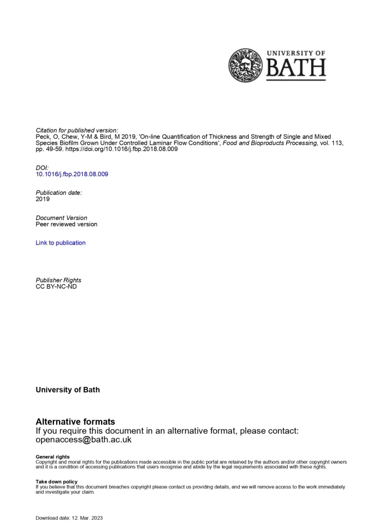 On-Line Quantification of Thickness and Strength of Single and Mixed Species Biofilm Grown Under Controlled Laminar Flow Conditions