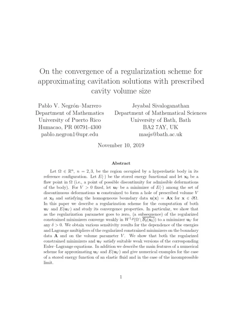 On the Convergence of a Regularization Scheme for Approximating Cavitation Solutions with Prescribed Cavity Volume Size
