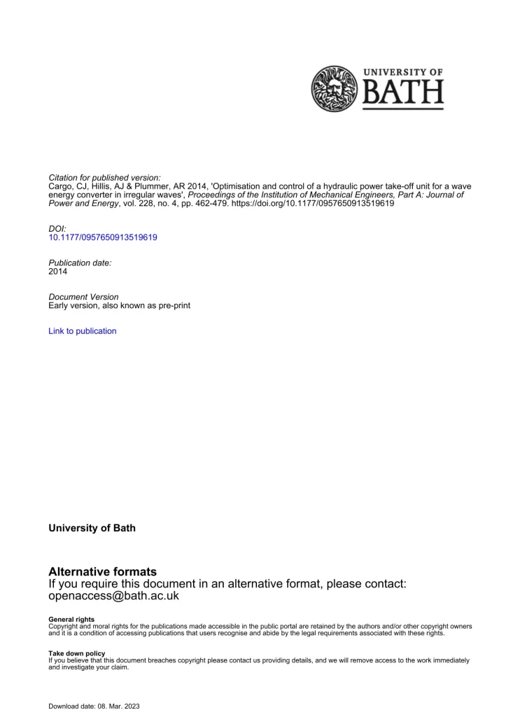 Optimisation And Control Of A Hydraulic Power Take-Off Unit For A Wave Energy Converter In Irregular Waves