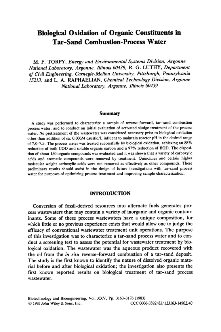Biological Oxidation Of Organic Constituents In Tar-Sand Combustion-Process Water 4 2 View details Download