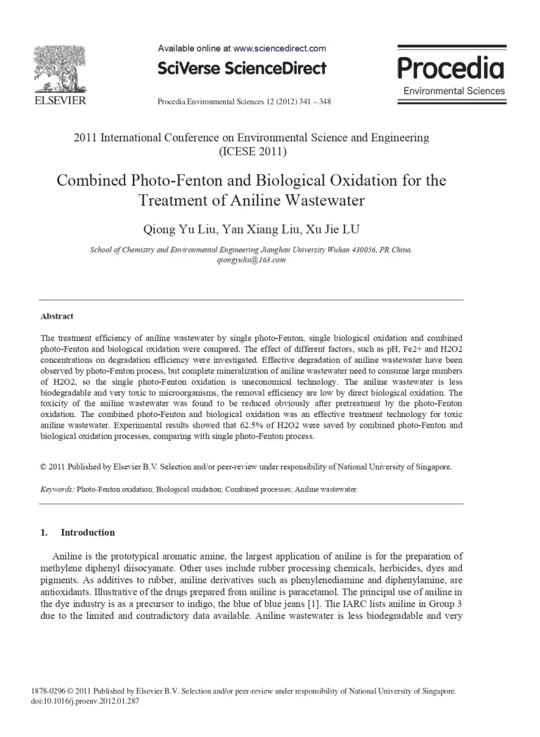 Combined Photo-Fenton And Biological Oxidation For The Treatment Of Aniline Wastewater 4 2 View details Download