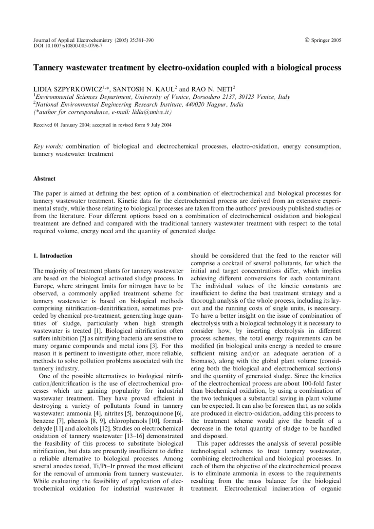 Tannery Wastewater Treatment By Electro-Oxidation Coupled With A Biological Process 4 2 View details Download