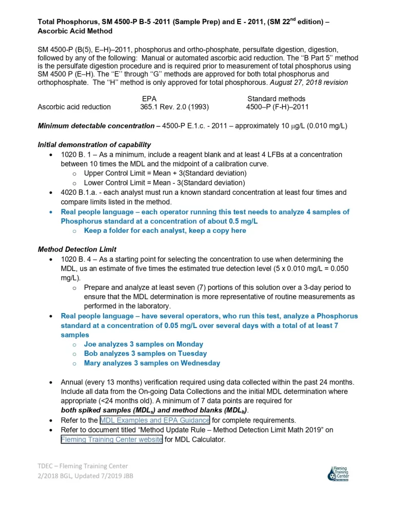 Total Phosphorus, SM 4500-P B-5 -2011 (Sample Prep) and E – 2011, (SM 22nd edition) – Ascorbic Acid Method 47 33 View details Download