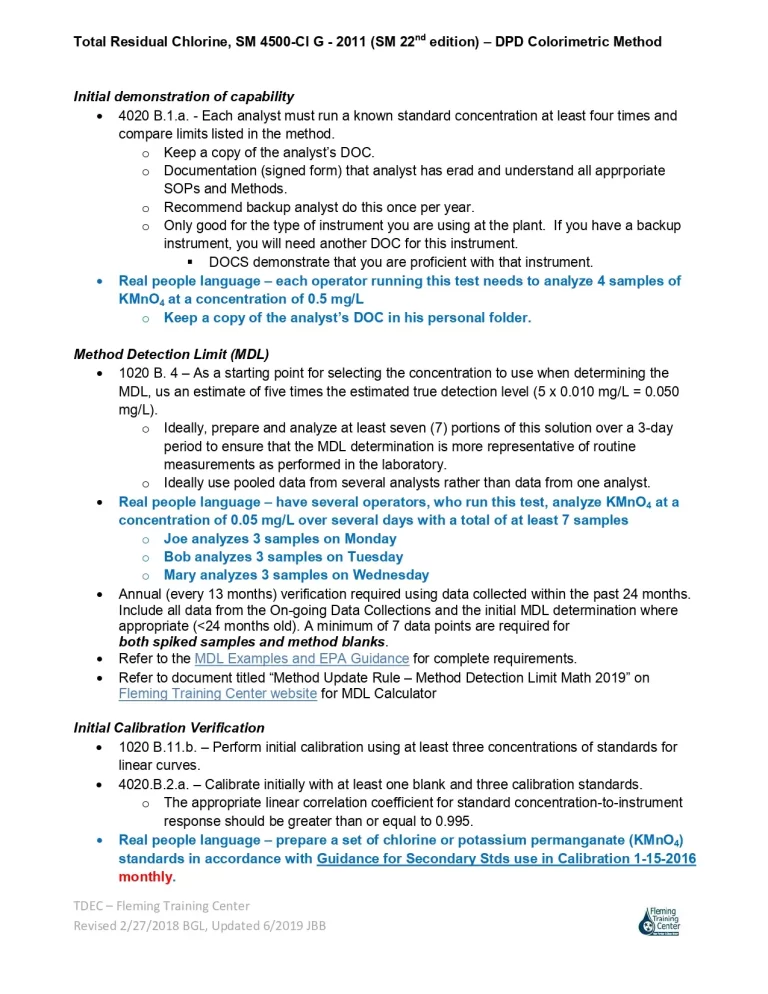 Total Residual Chlorine, SM 4500-Cl G – 2011 (SM 22nd edition) – DPD Colorimetric Method 40 52 View details Download