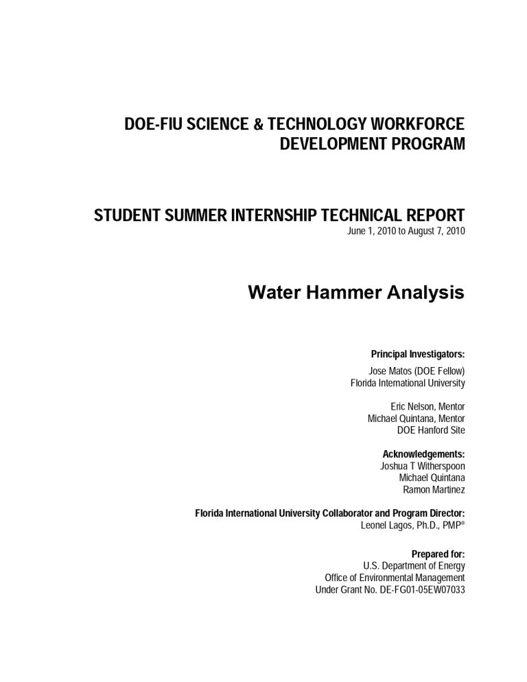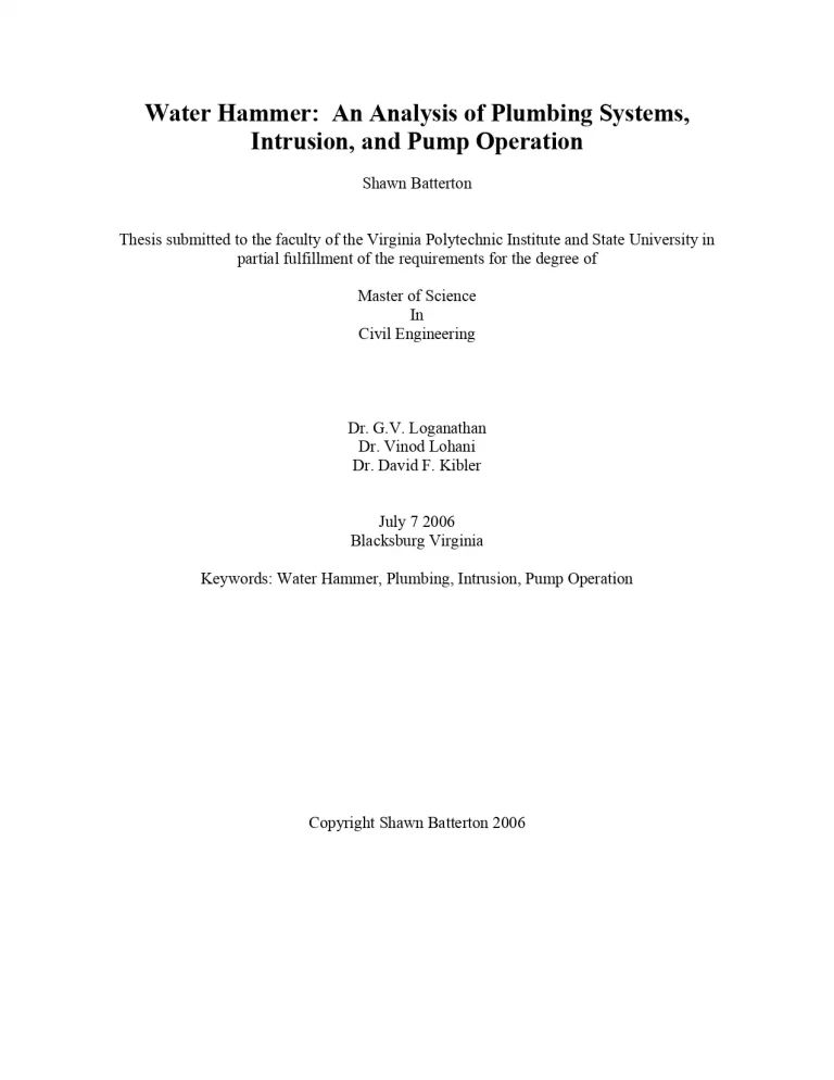 Water Hammer – An Analysis of Plumbing Systems, Intrusion, and Pump Operation 47 27 View details Download