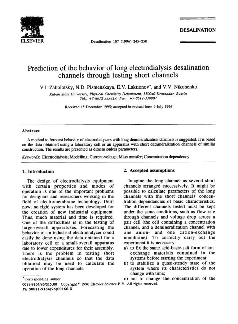 Prediction Of The Behavior Of Long Electrodialysis Desalination Channels Through Testing Short Channels 33 20 View details Download