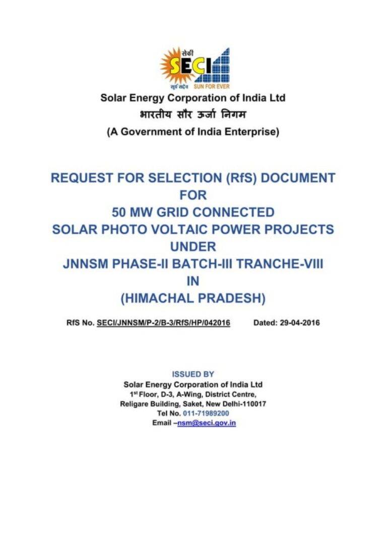 Request For Selection (Rfs) Document For 50 Mw Grid Connected Solar Photo Voltaic Power Projects Under Jnnsm Phase-Ii Batch-Iii Tranche-Viii 26 19 View details Download