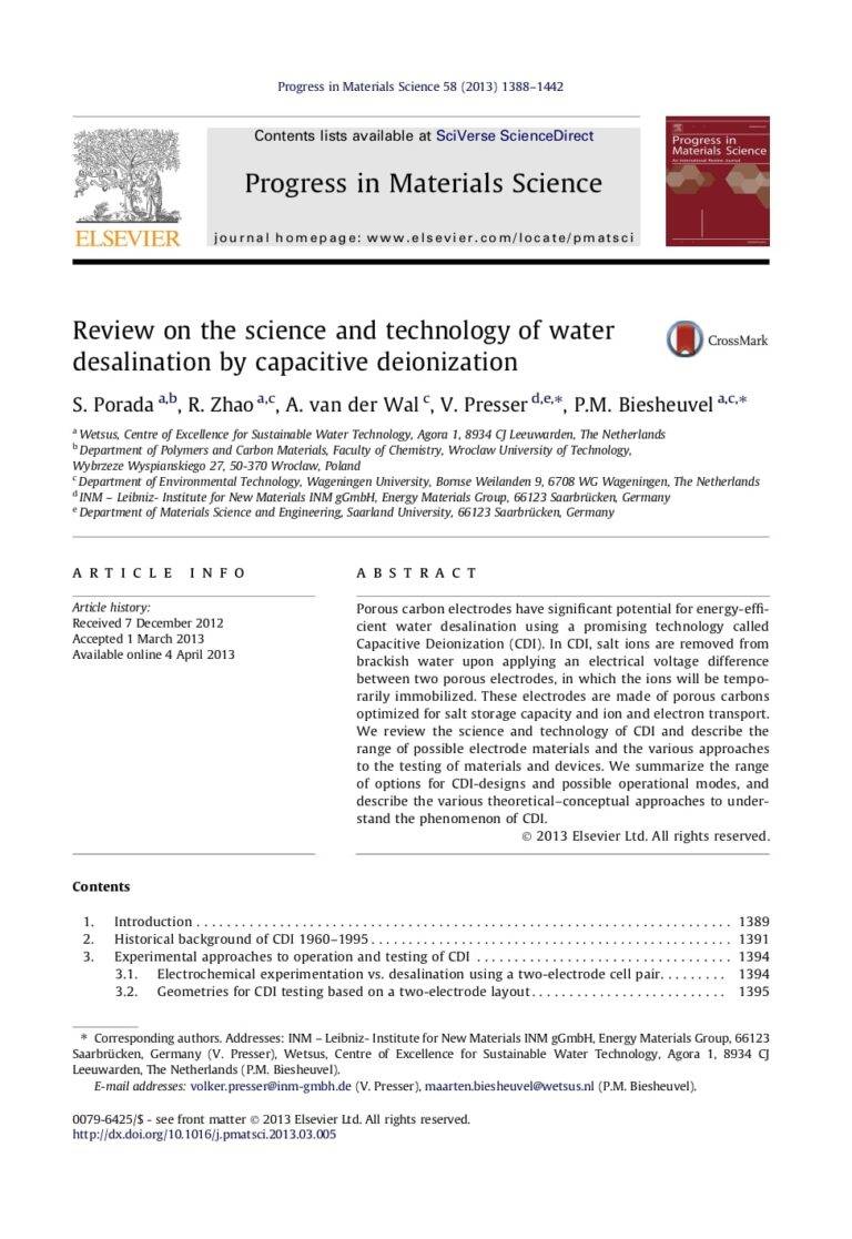 Review On The Science And Technology Of Water Desalination By Capacitive Deionization 37 20 View details Download