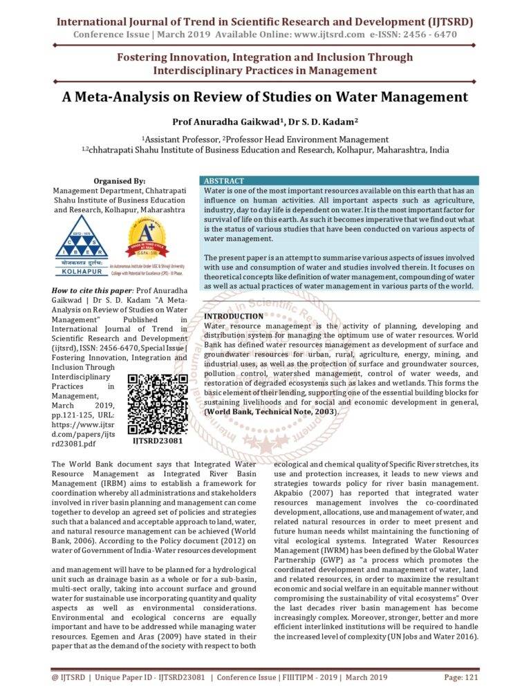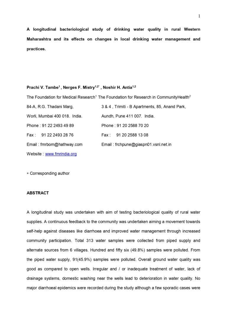 A Longitudinal Bacteriological Study Of Drinking Water Quality In Rural Western Maharashtra And Its Effects On Changes In Local Drinking Water Management And Practices. 29 25 View details Download