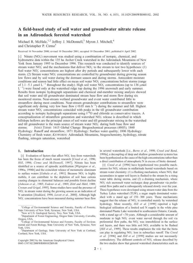 A Field-Based Study Of Soil Water And Groundwater Nitrate Release In An Adirondack Forested Watershed 35 20 View details Download
