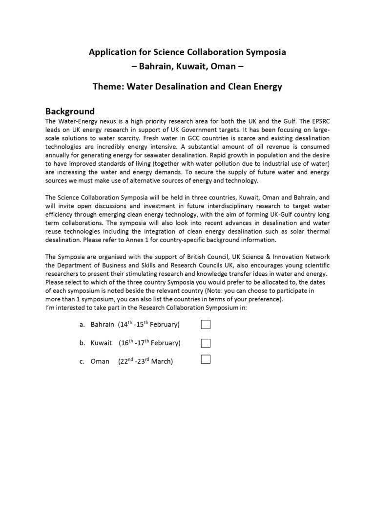 Application For Science Collaboration Symposia – Bahrain, Kuwait, Oman – Theme Water Desalination And Clean Energy 27 23 View details Download