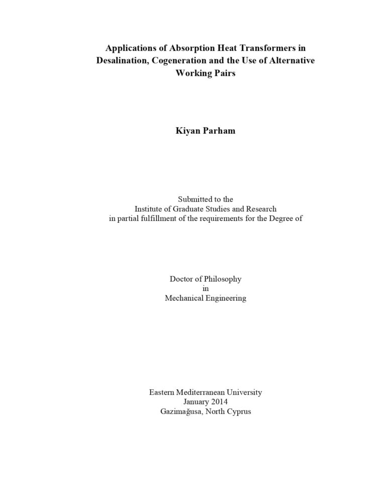 Applications Of Absorption Heat Transformers In Desalination, Cogeneration And The Use Of Alternative Working Pairs 33 24 View details Download
