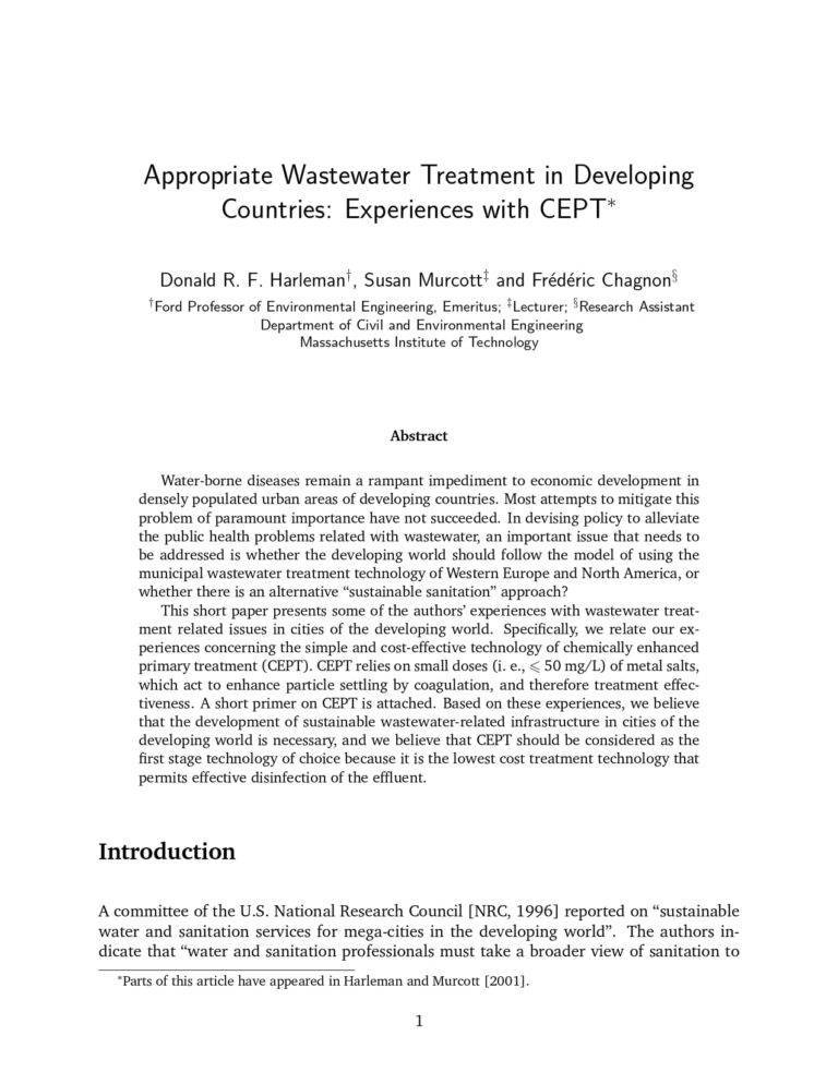 Appropriate Wastewater Treatment In Developing Countries: Experiences With CEPT 44 26 View details Download