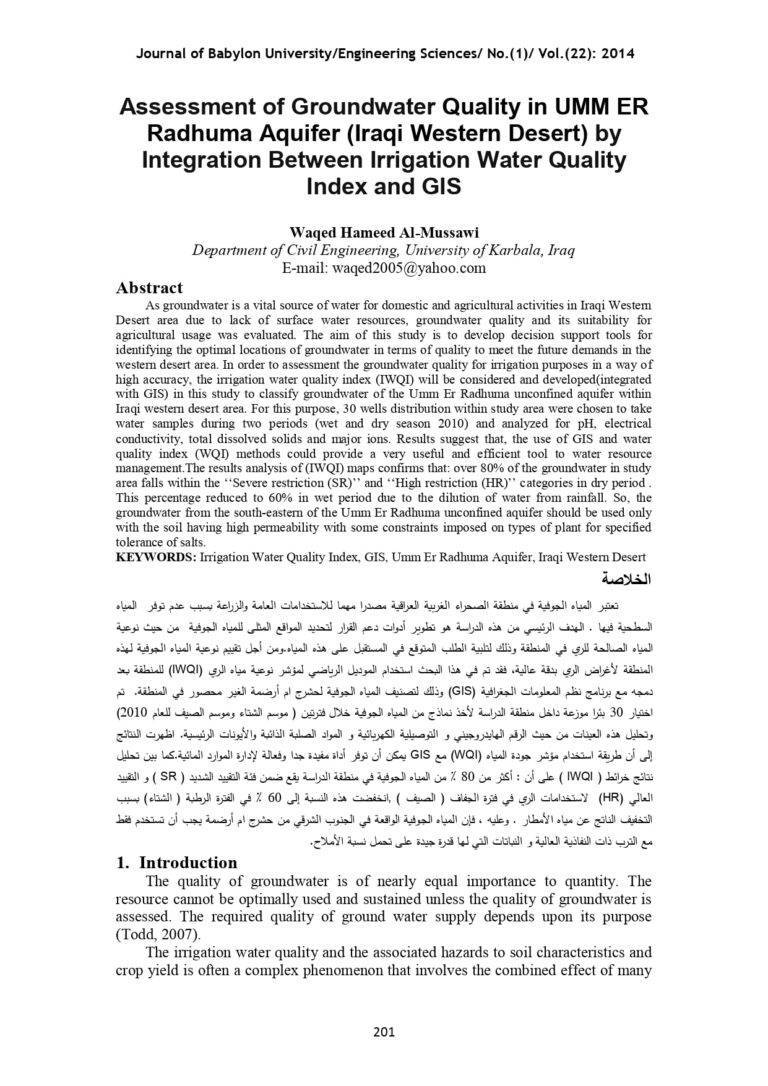 Assessment Of Groundwater Quality In UMM ER Radhuma Aquifer (Iraqi Western Desert) By Integration Between Irrigation Water Quality Index And GIS 33 25 View details Download