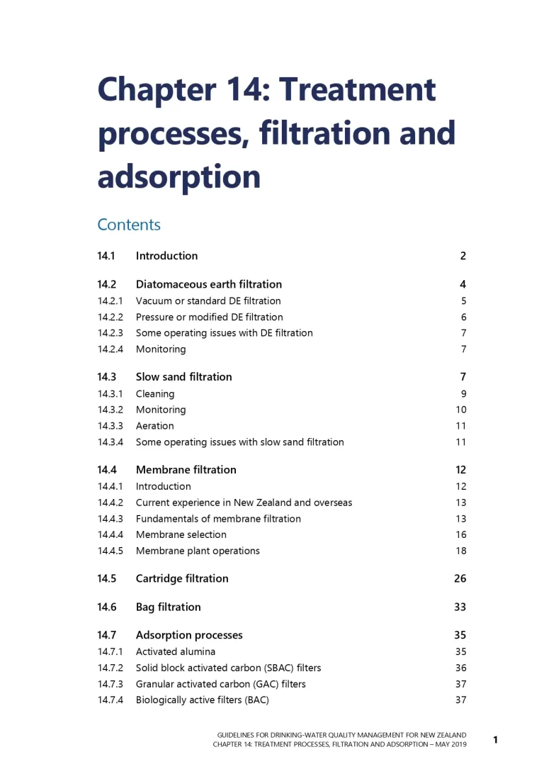 Guidelines For Drinking-Water Quality Management For New Zealand – Chapter 14: Treatment Processes Filtration And Adsorption 29 0 View details