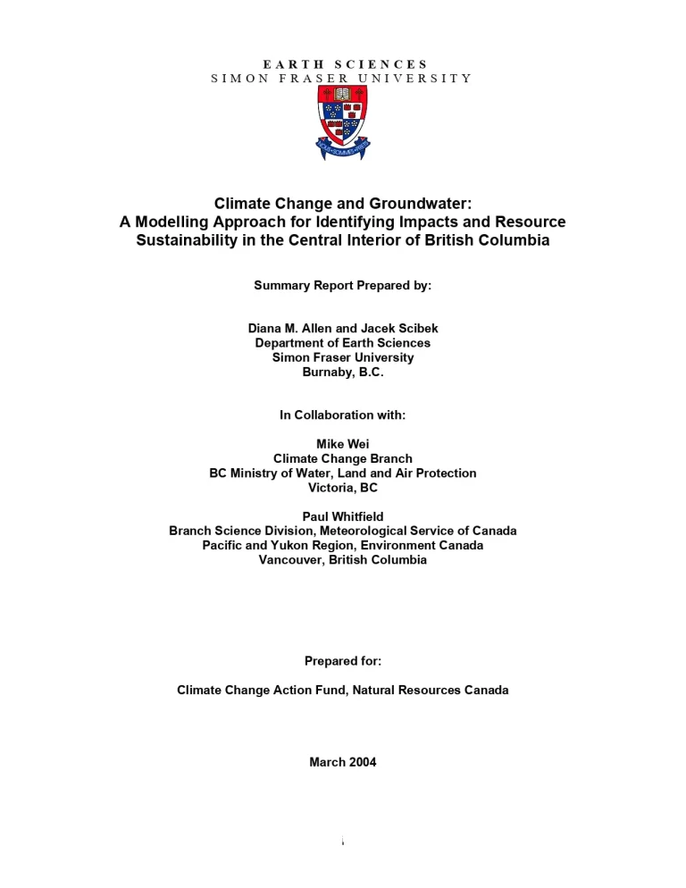 Climate Change And Groundwater A Modelling Approach For Identifying Impacts And Resource Sustainability IN THE Central Interior OF British Columbia 32 15 View details Download