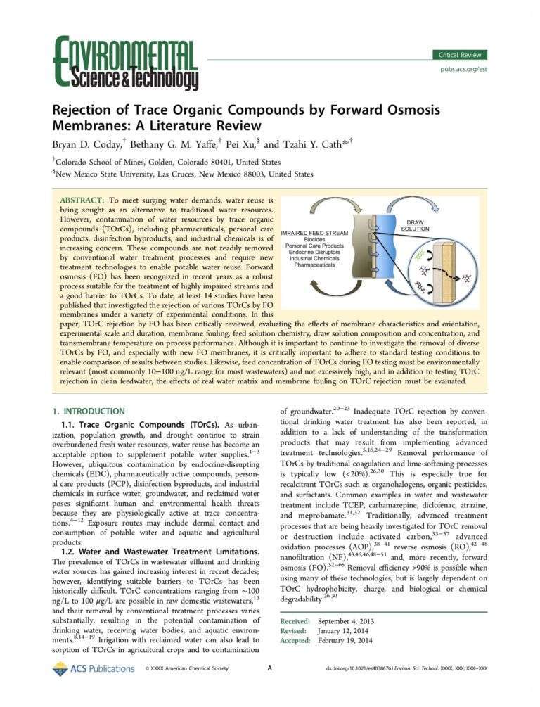 Rejection Of Trace Organic Compounds By Forward Osmosis Membranes: A Literature Review 35 32 View details Download