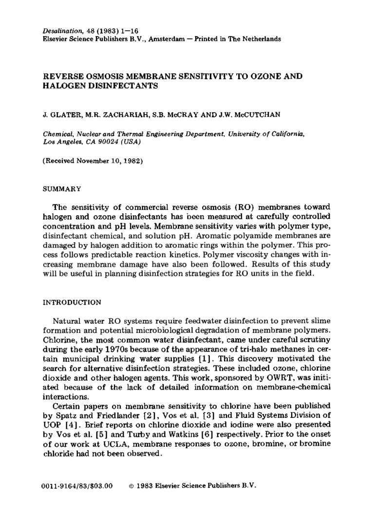 Reverse Osmosis Membrane Sensitivity To Ozone And Halogen Disinfectants 1983 32 18 View details Download