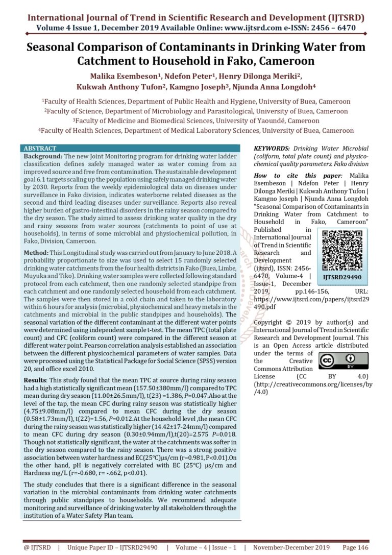 Seasonal Comparison of Contaminants in Drinking Water from Catchment to Household in Fako, Cameroon 28 12 View details Download