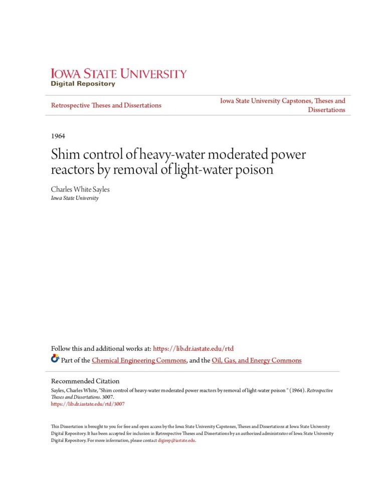 Shim Control Of Heavy-Water Moderated Power Reactors By Removal Of Light-Water Poison 33 22 View details Download