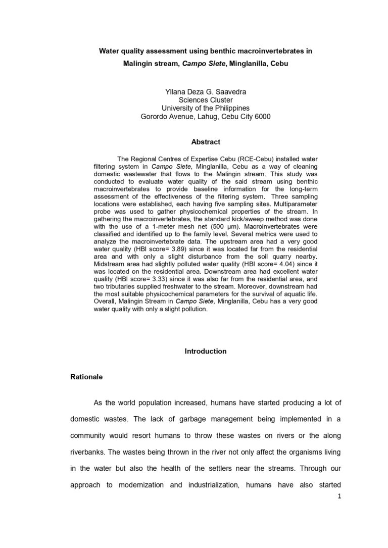 Water Quality Assessment Using Benthic Macroinvertebrates In Malingin Stream, Campo Siete, Minglanilla, Cebu 33 25 View details Download
