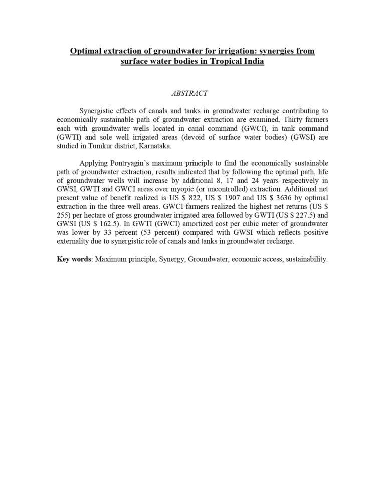 Optimal Extraction Of Groundwater For Irrigation Synergies From Surface Water Bodies In Tropical India 31 12 View details Download