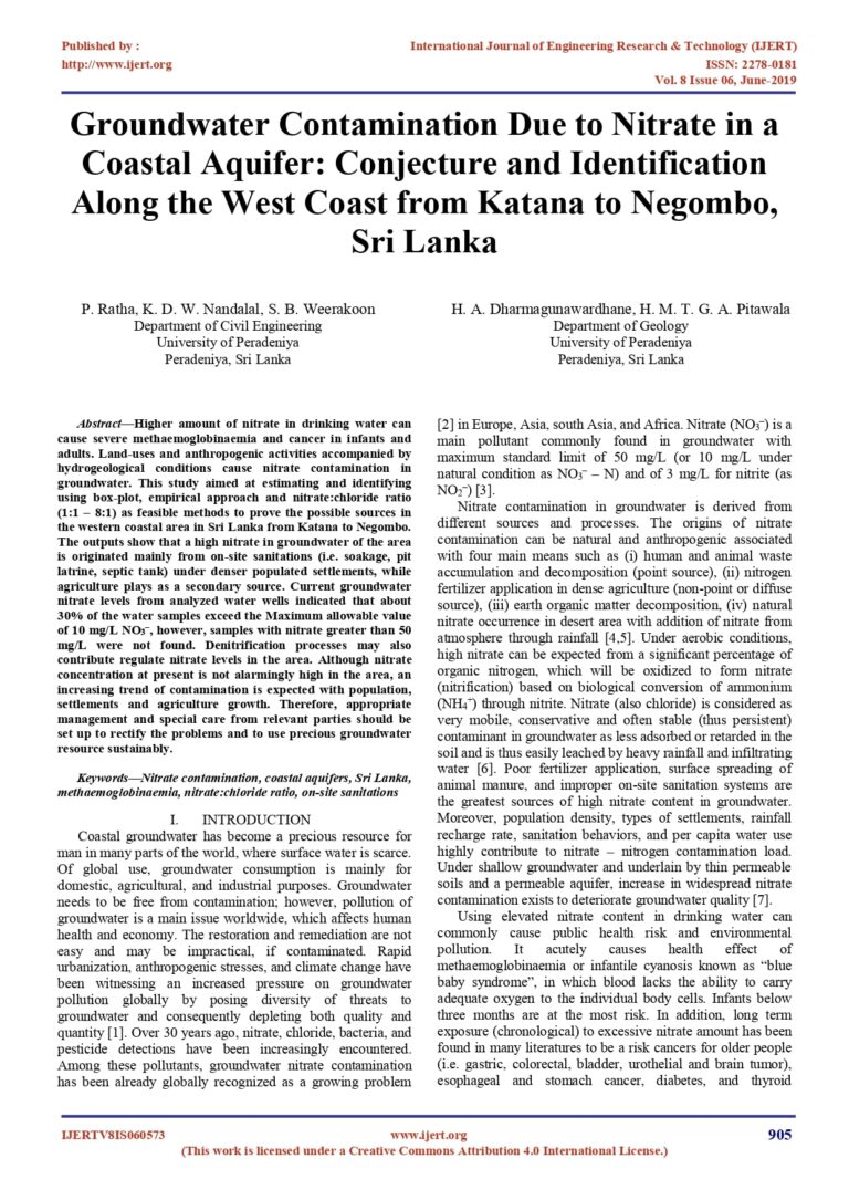 Groundwater Contamination Due to Nitrate in a Coastal Aquifer Conjecture and Identification Along the West Coast from Katana to Negombo, Sri Lanka 32 19 View details Download