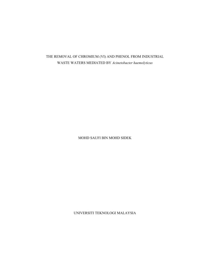 The Removal Of Chromium (Vi) And Phenol From Industrial Waste Waters Mediated 33 14 View details Download