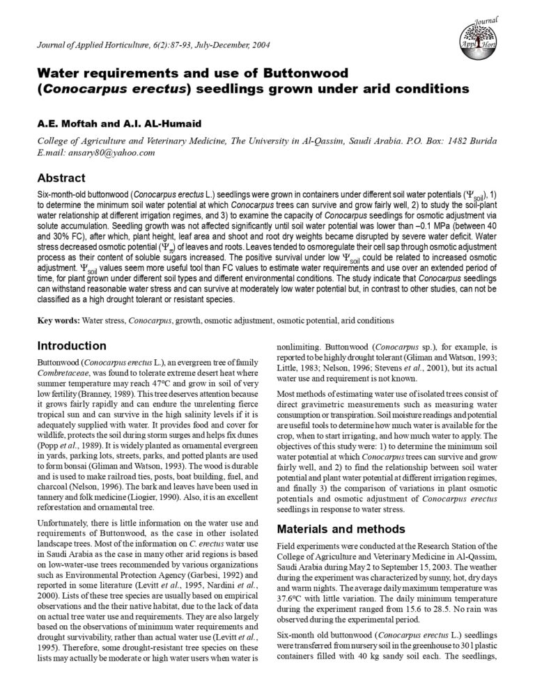 Water Requirements and Use of Buttonwood (Conocarpus Erectus) Seedlings Grown Under Arid Conditions 36 27 View details Download