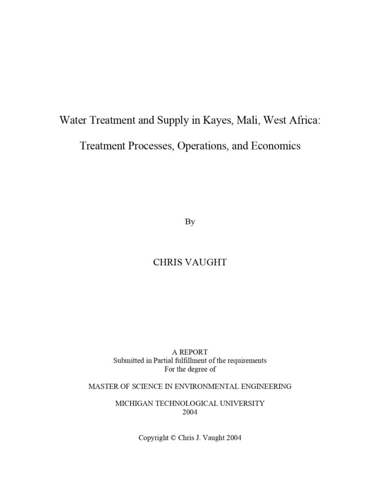 Water Treatment and Supply in Kayes, Mali, West Africa: Treatment Processes, Operations, and Economics 34 15 View details Download