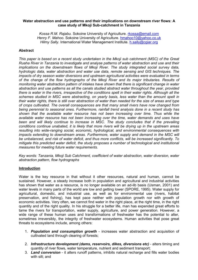 Water Abstraction and Use Patterns and Their Implications on Downstream River Flows A Case Study of Mkoji Sub-Catchment in Tanzania 32 11 View details Download