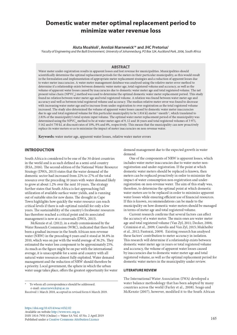 Domestic Water Meter Optimal Replacement Period to Minimize Water Revenue Loss 34 25 View details Download
