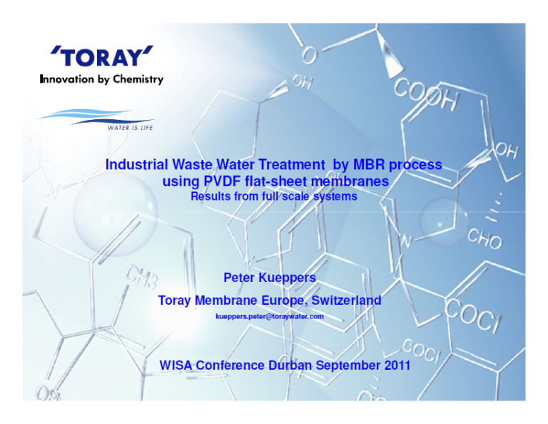 Industrial Waste Water Treatment by MBR process using PVDF flat-sheet membranes Results from full scale systems 4 2 View details Download