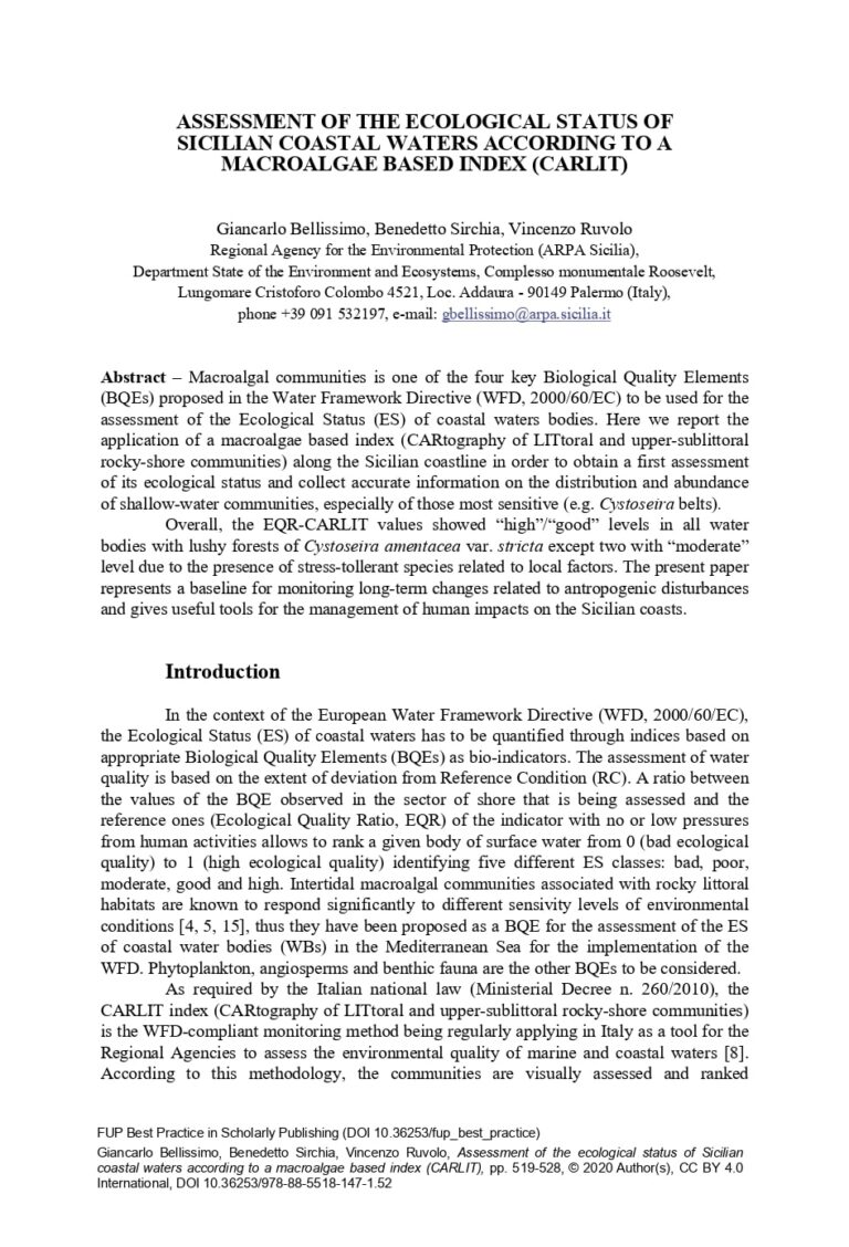 Chapter Assessment of the Ecological Status of Sicilian Coastal Waters According to a Macroalgae Based Index (CARLIT) 32 28 View details Download