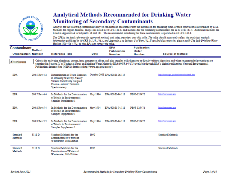Analytical Methods Recommended for Drinking Water Monitoring of Secondary Contaminants 4 1 View details Download