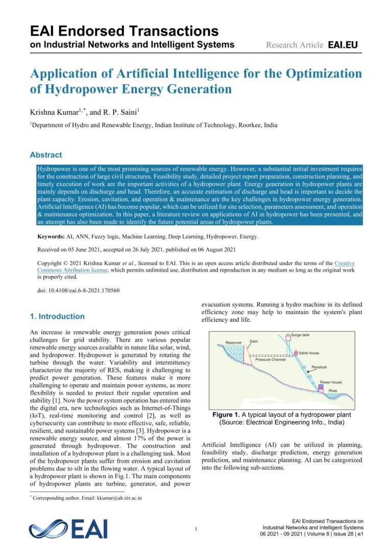 Application of Artificial Intelligence for the Optimization of Hydropower Energy Generation 37 12 View details Download