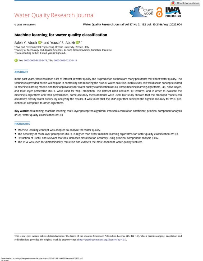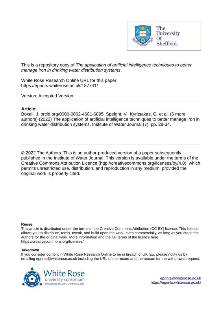 The Application Of Artificial Intelligence Techniques To Better Manage Iron In Drinking Water Distribution Systems 29 15 View details Download